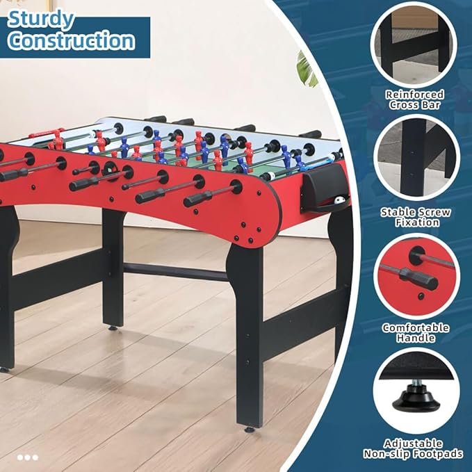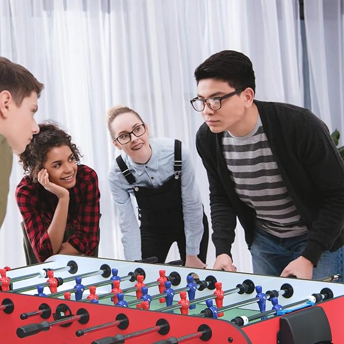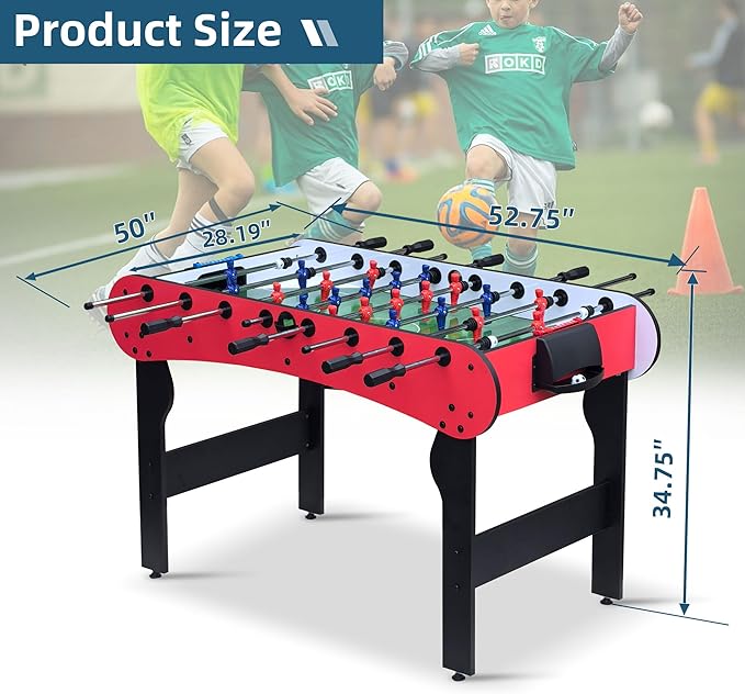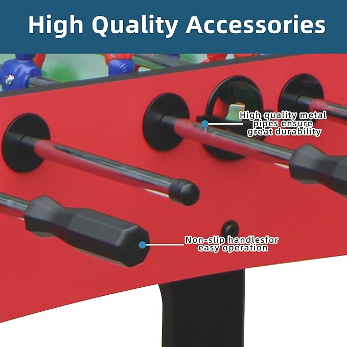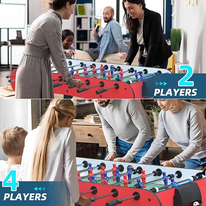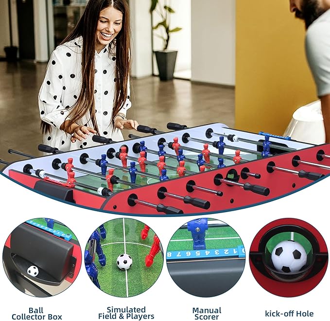 - Realistic Game Experience: Our soccer foosball game table comes with a large soccer field, 22 realistic football players, and 4 soccer balls, helping restore the real game scene to create an enjoyable atmosphere in your game room or office. In addition, there are scorers on both sides that can accurately track and record scores in real time.