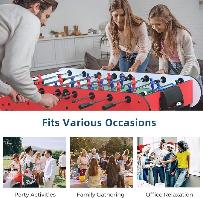 - Fit Various Occasions: The table football is suitable for family gatherings, birthday parties, office breaks and other occasions. The professional foosball game table suitable for all kinds of people, whether Amateur or professional player can get started quickly that can fully exercise the players' coordination ability reaction speed. Not only a must-have fun at parties, but also a perfect gift for others.