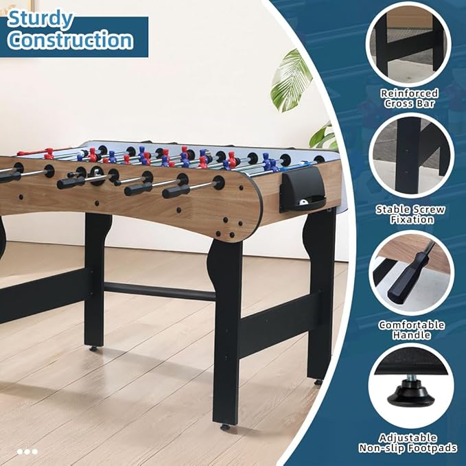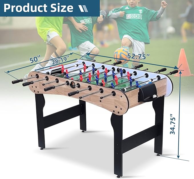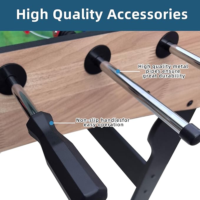 - Realistic Game Experience: Our soccer foosball game table comes with a large soccer field, 22 realistic football players, and 4 soccer balls, helping restore the real game scene to create an enjoyable atmosphere in your game room or office. In addition, there are scorers on both sides that can accurately track and record scores in real time.