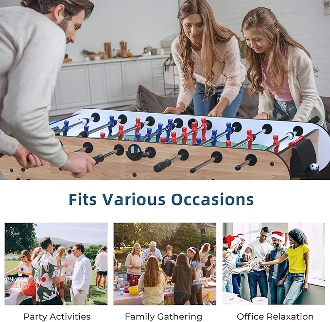 - Fit Various Occasions: The table football is suitable for family gatherings, birthday parties, office breaks and other occasions. The professional foosball game table suitable for all kinds of people, whether Amateur or professional player can get started quickly that can fully exercise the players' coordination ability reaction speed. Not only a must-have fun at parties, but also a perfect gift for others.
