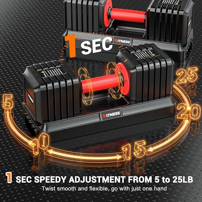 - 5 Weights in 1 Adjustable Dumbbell: Rendpas Adjustable Weights Dumbbells Set offers a comprehensive weight range with a 5-in-1 system that can meet different workout needs; This adjustable dumbbell set can be rotated between weights ranging from 5 lbs to 25 lbs, increasing by 5 lbs with each turn, taking you from beginner to advanced levels and providing a comprehensive range of weights
