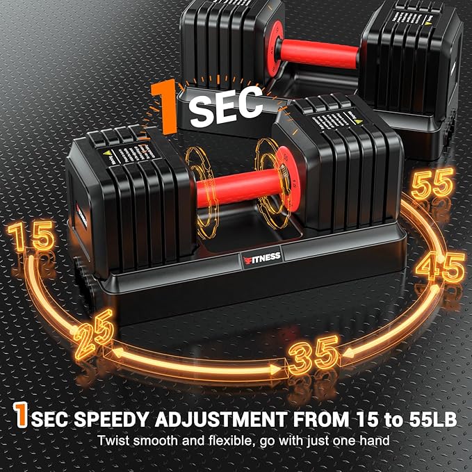 - 5 Weights in 1 Adjustable Dumbbell: Rendpas Adjustable Weights Dumbbells Set offers a comprehensive weight range with a 5-in-1 system that can meet different workout needs; This adjustable dumbbell set can be rotated between weights ranging from 15 lbs to 55 lbs, increasing by 10 lbs with each turn, taking you from beginner to advanced levels and providing a comprehensive range of weights