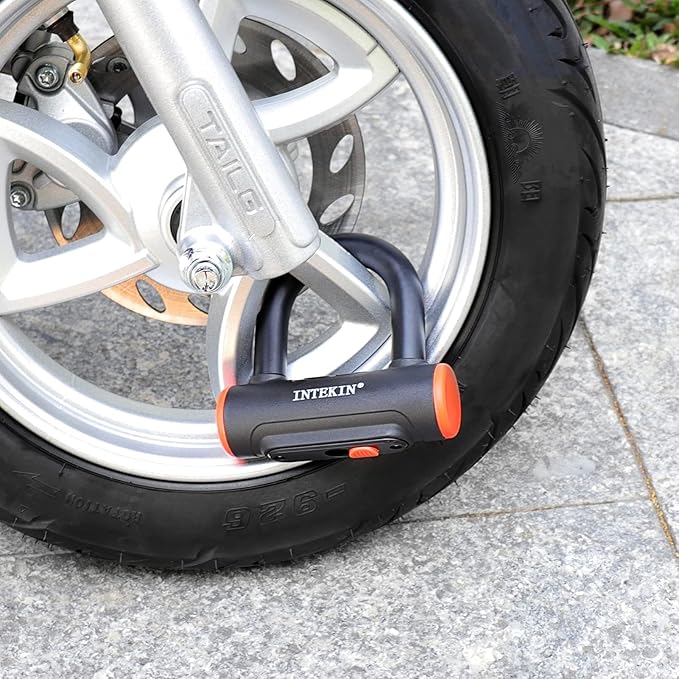 - PRECISION ZINC ALLOY DISC LOCK CORE: Equipped with a high-security zinc alloy disc lock cylinder, this U-lock is engineered to withstand hydraulic cutting, drilling, and picking attempts. The dustproof keyhole cover helps maintain smooth operation by protecting against dirt and debris