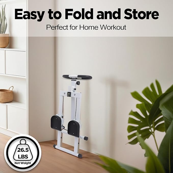 Stair Stepper Climber Adjustable Height, Ergonomic Handlebars, Smooth & Quiet Dual Hydraulic System, Advanced Fitness Tracking, Compact & Foldable for Home Exercise Step Machines