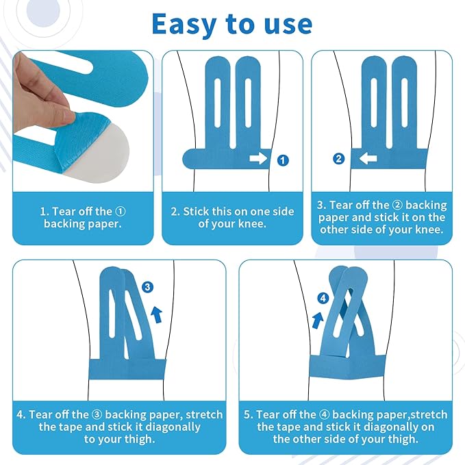 - Quick & Effortless Application - The zonal peel design of our pre-cut kinesiology tape saves time and hassle. Skip the scissors and apply the kinesiology tape in seconds, kinesiology tape for knee is ideal for athletes on the go who need fast, reliable support