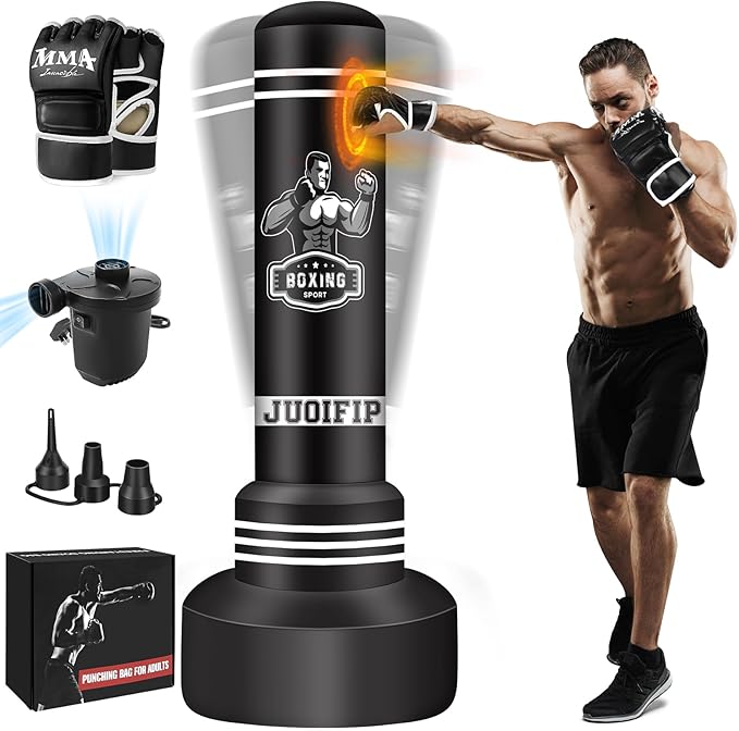- Boxing Bag with Stand: The freestanding punching bag is 70'' tall, perfect for teens and adults. Thickened PVC material make the at home punching bags more durable. It's a good choice for you to train with boxing equipment at-home.