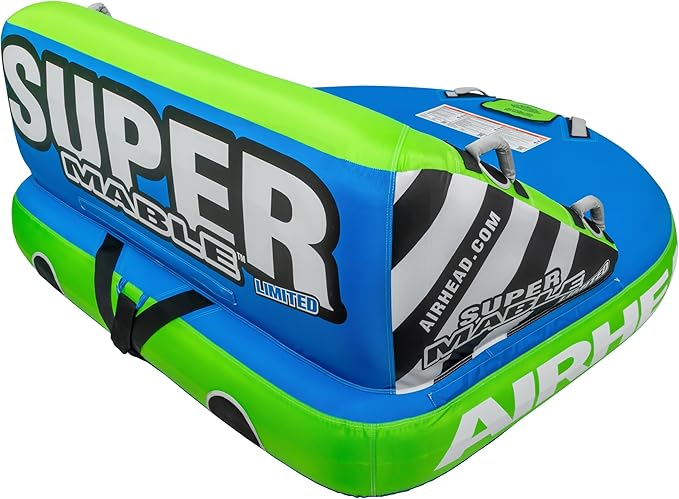 - Airhead SUPER Mable, 1-3 Rider - Inflatable Towable Tube for Boating and Water Sports, Heavy Duty Full Nylon Cover & Zipper with EVA Foam Padding, Easy Inflating & Deflating