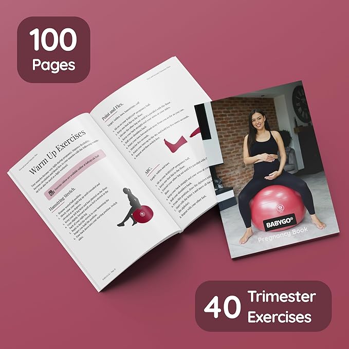 BABYGO Birthing Ball - Pregnancy Yoga Labor & Exercise Ball & Book Set Trimester Targeting, Maternity Physio, Birth & Recovery Plan Included Anti Burst Eco Friendly