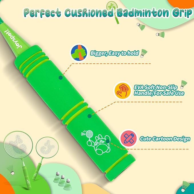 JOY SPOT! Kids Badminton Rackets Set with Soft Grip, Oversize & Lightweight Shuttlecocks Racquet with Carry Bag for Children Youth, 2 Player Sport Game for Indoor Outdoor Backyard