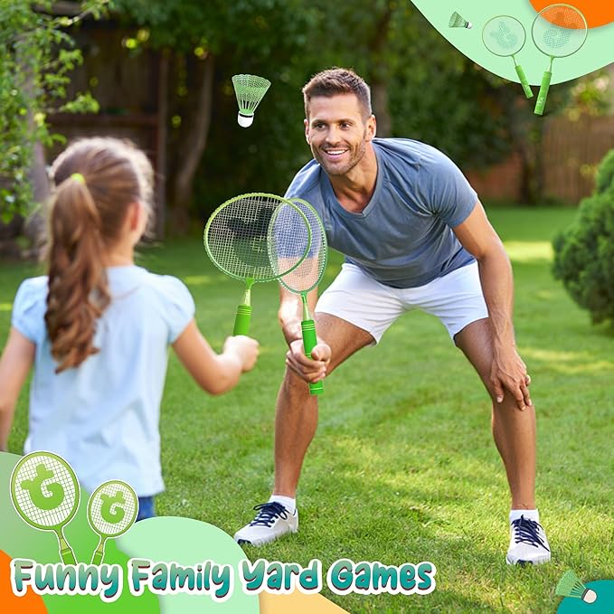 - 【Great Gift for Kids】 This badminton racket set makes an excellent gift for birthdays, holidays, or any special occasion. It’s an ideal choice for children aged 3-12, encouraging outdoor play and helping them develop essential physical and mental skills