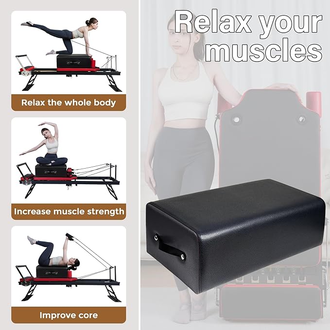 - 【High-quality design】The Pilates box adopts a solid wooden structure and the surface is made of high-quality soft PU leather,which is waterproof and sweat-proof and easy to clean.The lining is made of high-density sponge to improve the comfort when practicing Pilates and provide a pleasant Pilates experience