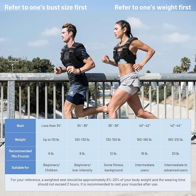 - Tailored Weight Options: Available in various weights tailored for all users,6lb/8lb/12lb/16lb/20lb weighted vest ensures even weight distribution to reduce fatigue, making your training sessions more effective.