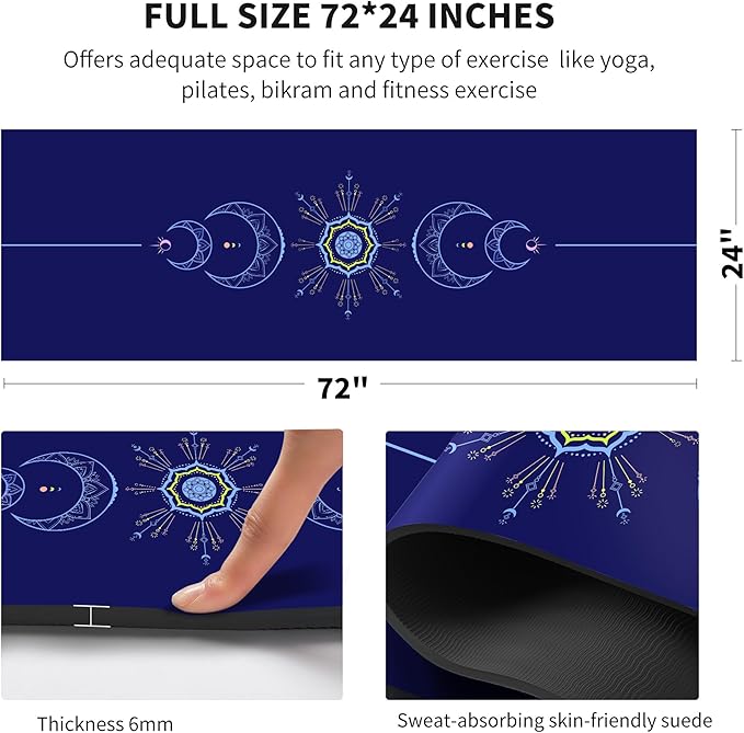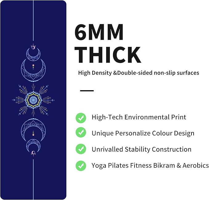 - EXTRA THICK LONG AND WIDE:72"x 24" offers adequate space to fit any type of exercise like yoga, pilates, fitness exercise and so on. nuveti's exercise mat is is more safer and comfortable. It is perfect for practicing balance postures, Especially the 6mm extra thick is high density, Provides excellent cushioning and resilience, All our mats come with a free bag for easy transport from home to yoga class
