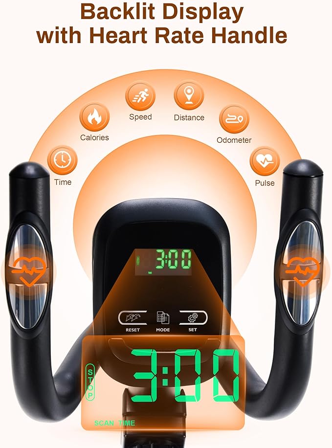 - Track Your Progress:The backlit LCD monitor displays real-time progress, including speed, distance, time, calories burned, odometer readings, and heart rate. The built-in iPad holder lets you watch TV or movies while riding, helping you stay motivated and focused on your fitness goals. This allows you to understand your exercise effect, develop a more effective exercise plan, and ultimately achieve your fitness objectives.