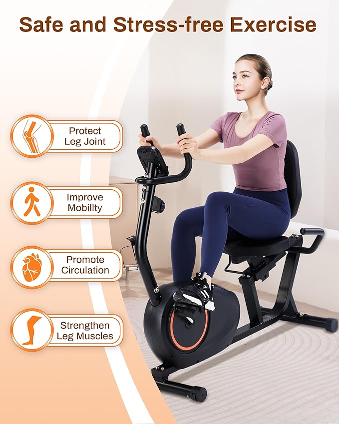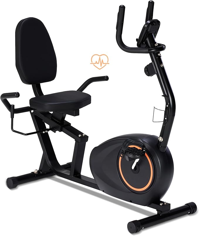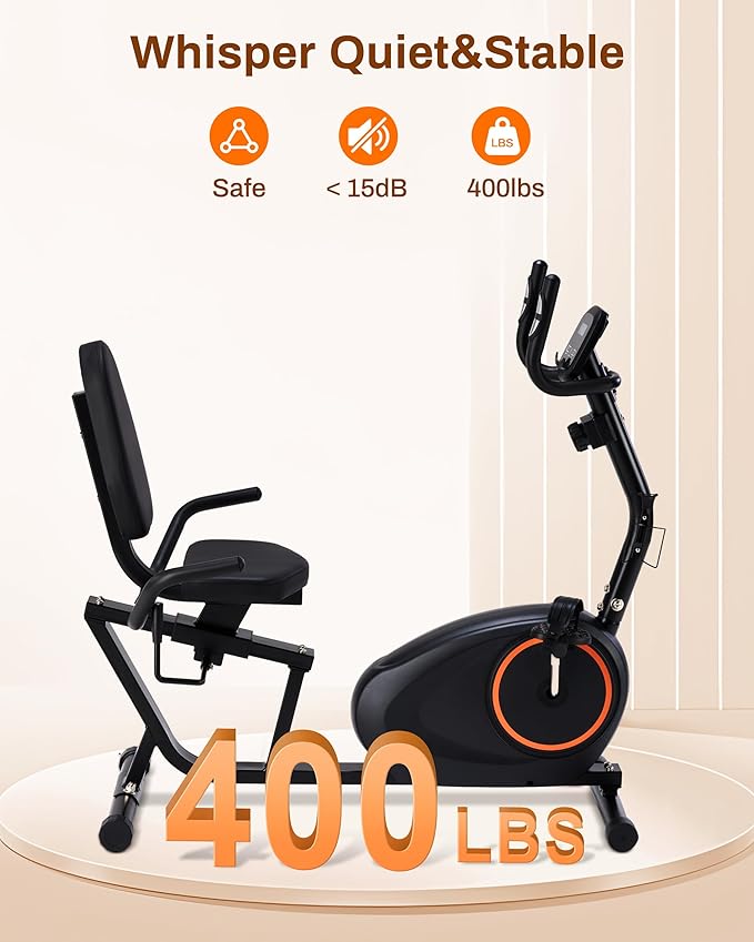 Recumbent Exercise Bike for Home with Quiet 16 Levels Magnetic Resistance, Recumbent Bike for Seniors & Adults with 400LBS Weight Capacity, Large Comfortable Seat, Backlit LCD Monitor, and Pulse Sensor