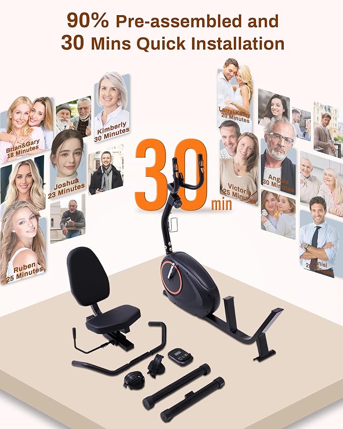 - Easy Assembly: The Kawnina recumbent exercise bike for seniors arrives with clear instructions and a video, allowing users to quickly learn how to operate it. Most users are able to complete the assembly within 30 minutes.