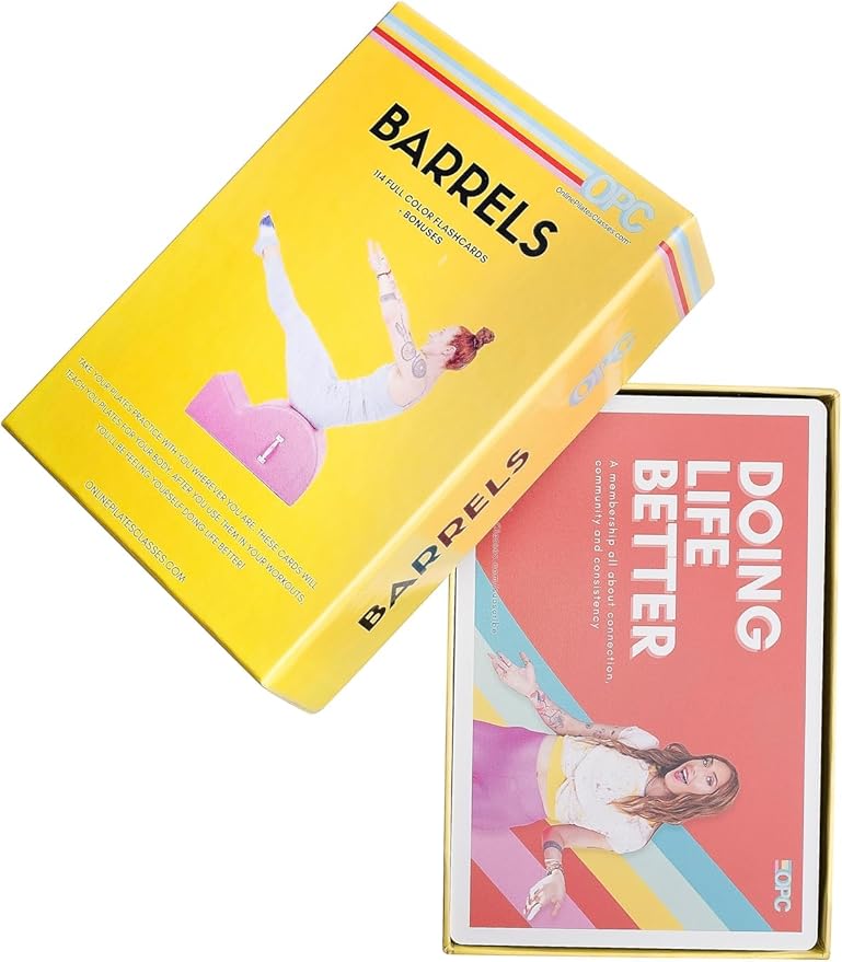 OnlinePilatesClasses Pilates Barrels Flashcards, Deck Cards Set with Video Tutorial for Spine Corrector, Ladder Barrel, Small Barrel & C-Shaper Exercise, Home Gym Workout, Barrel Arc Not Included