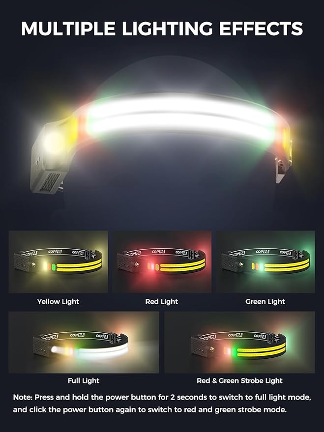 - ใ๐ฐ ๐๐ผ๐น๐ผ๐ฟ๐ ๐๐ถ๐ด๐ต๐๐ป๐ถ๐ป๐ดใThis innovative headlamp H4C features a stunning array of multi-color LED options, including white, yellow,red,green, and a super bright side light. Whether you're setting up camp, stargazing, hunting or working on a project, the customizable colors provide the perfect lighting for any scenario.