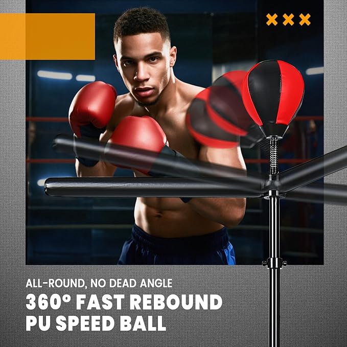 - High Quality: The boxing speed ball with quick rebound can work on your punching speed; the reflex bar rotates 360 degrees, suitable for professional bodybuilders