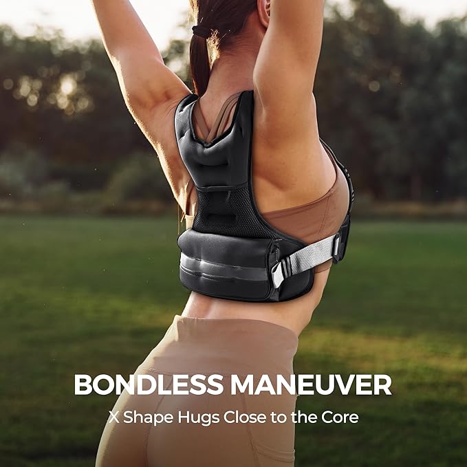 - ERGONOMIC & SNUG FIT: Our weight vest’s adjustable straps offer a snug, customized fit for both teens and adults, ensuring comfort and stability during even the most intense workouts. The ergonomic X-shaped design evenly distributes weight all over your torso, so you can power through your routine without any discomfort.