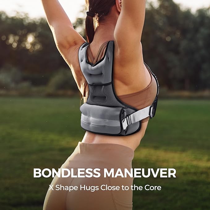 - ERGONOMIC & SNUG FIT: Our weight vest’s adjustable straps offer a snug, customized fit for both teens and adults, ensuring comfort and stability during even the most intense workouts. The ergonomic X-shaped design evenly distributes weight all over your torso, so you can power through your routine without any discomfort.