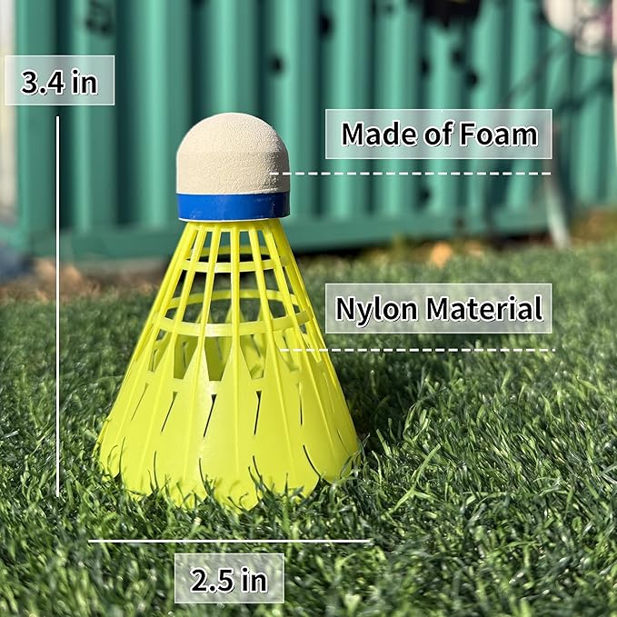 - Material: Nylon birdies badminton are a modern alternative to traditional feather shuttlecocks, crafted from durable nylon materials.Strict selection of nylon feathers, good toughness, high compressive strength, not afraid of extreme cold and heat.