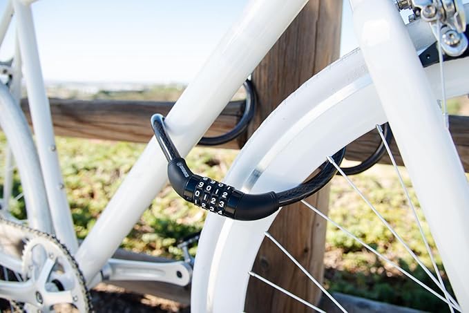BRINKS 6 ft Outdoor Heavy Duty Bike Lock Cable, Thick, Anti Theft Self-Coiling Design, Resettable 4-Dial Combination, 5/8" Weather-Resistant Vinyl Coating for Bikes