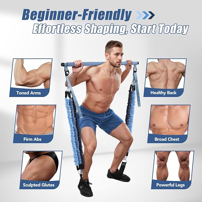 Pilates Equipment Pilates Bar Kit with 6 Fabric Wrapped Resistance Bands 20-180LBS for Women & Men Home Gym Exercise Fitness Full-Body Workouts Multifunctional Yoga Pilates Stick