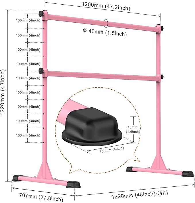 - 【Premium Quality and Durable】The height adjustable ballet barre is made of high quality steel pipes with a pink powder coated finish. It can hold up to 350 pounds and is ideal for ballet, fitness and yoga enthusiasts