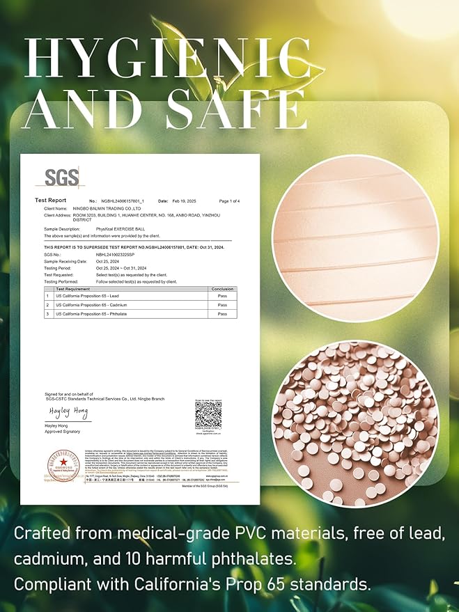 - The PhysKcal Gym Ball with Small Pilates Ball Set is a high-quality, anti-burst fitness accessory that supports up to 300kg/660lbs dynamic load and 2000lbs for static load due to its premium PVC material. Enhanced with an anti-slip frosted finish, this gym ball ensures a secure grip during exercises, promoting balance and stability. Crafted from upgraded 16p-free PVC, this gym ball is free from harmful chemicals like phthalates, latex, and BPA, making it a safe choice for various exercises, seating, and even during pregnancy. The gym ball's versatility is highlighted by its ability to strengthen core muscles, as evidenced by athletes like Lebron James incorporating it into their training routines. Additionally, the unstable nature of the gym ball activates spinal muscles, enhancing torso strength and stability. The product includes essential accessories such as a hand pump, plugs, plug remover, graphic instructions, and a measuring tape to ensure proper inflation and maintenance. Detailed guidance for selecting the appropriate gym ball size for different uses is provided in the package. For any inquiries or assistance, customers can contact the seller directly through Amazon or email support.