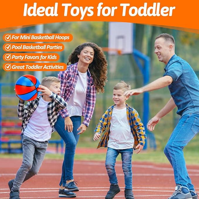 - [Perfect Starter Size for Young Kids] Our quiet basketball dribbling indoor is 7 inches (fully inflated), perfectly sized for small hands, making it easy for toddlers and kids to grip and control the ball, convenient for children to practice throwing, catching and dribbling. This is a great set for families or groups, helping kids improve their social skills and teamwork while having fun. Wonderful kids sports and outdoors party favors, outdoor sports gifts toys for boys girls toddler 1-3 6-8.