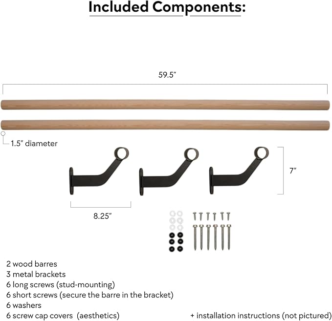 - Simple Installation: We include detailed, step-by-step instructions to walk you through mounting your new barre, using included hardware.