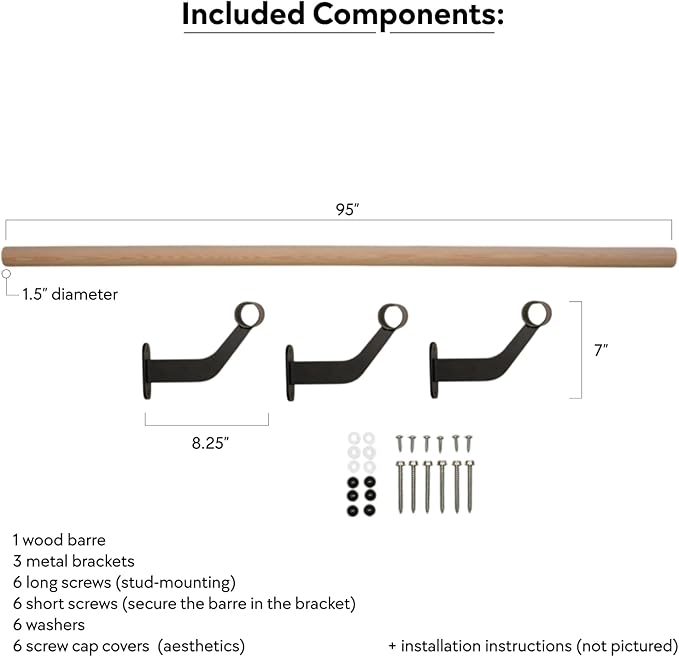 - Simple Installation: We include detailed, step-by-step instructions to walk you through mounting your new barre, using included hardware.