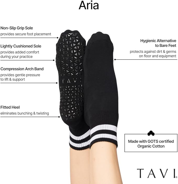 TAVI NOIR Aria Grip Socks – Pilates Socks with Grips for Women, Non Slip, Yoga & Barre