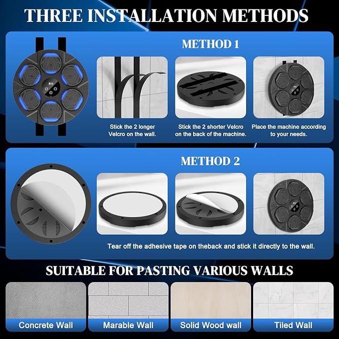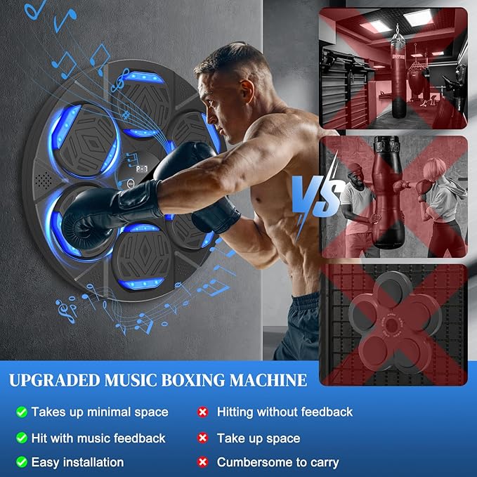 - Ideal Music Punching Machine for Home & Office Fitness - This music boxing machine is not only suitable for use in the gym but also an ideal choice for home and office fitness. It's compact and lightweight, easily wall-mounted to save space. During tense work breaks, just a few minutes of music boxing training can quickly rejuvenate you and keep you in top condition.