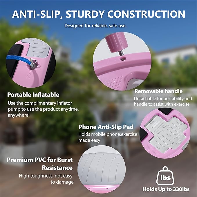 - 【PREMIUM NON-SLIP DESIGN】: Crafted from high-quality, anti-burst PVC material, the textured surface ensures superior grip, while the stable base keeps you safe during every exercise. Perfect for use at home, in the gym, or in yoga studios, this balance ball offers reliable performance.