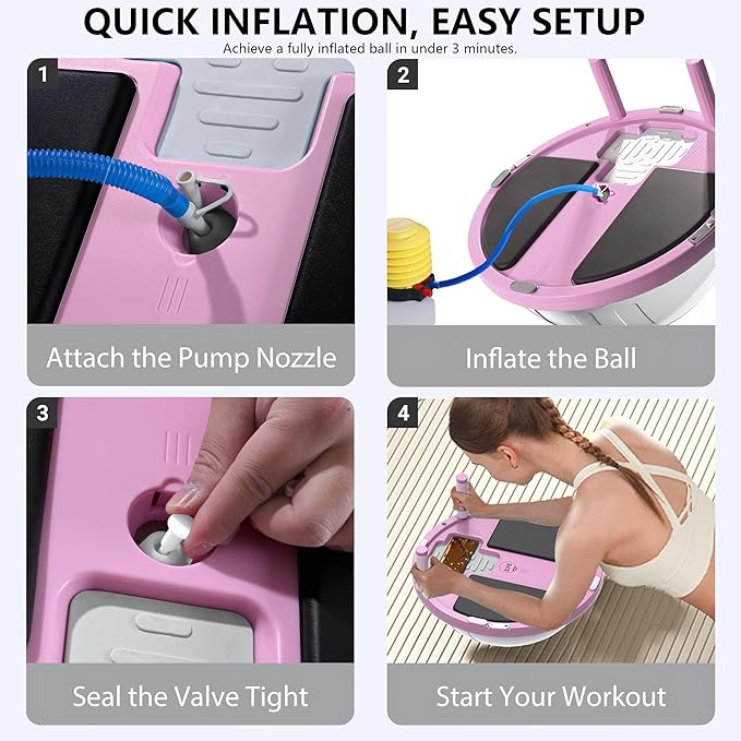 ZPZ Half Balance Ball Trainer, Compact Portable Inflatable Exercise Yoga Stability Ball with App-Based Balance Game, Pilates Resistance Bands, Foot Pump, Non-Slip Base for for Full-Body Workouts, Home Gym & Easy Storage (18.3 Inch Pink)