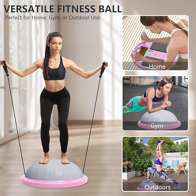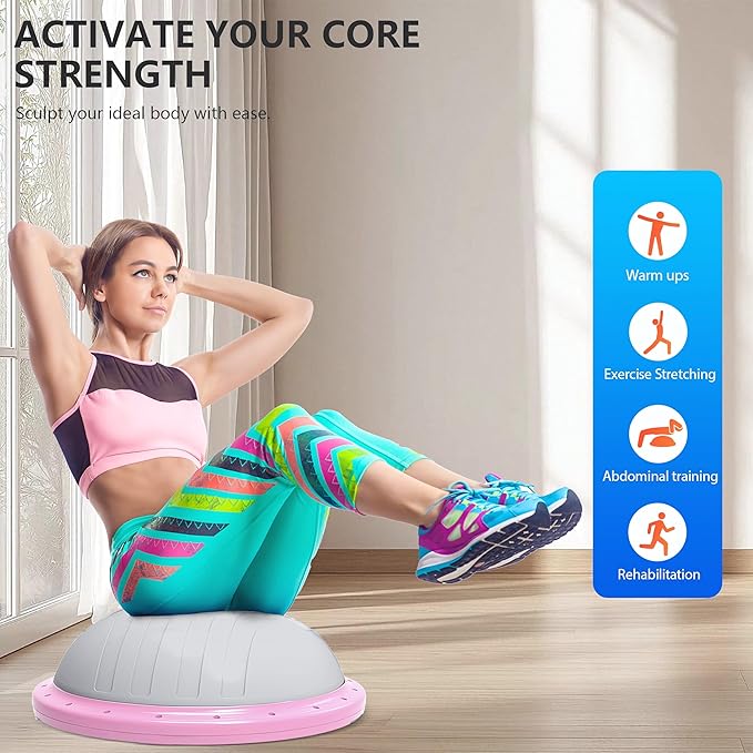 - 【VERSATILE FITNESS BALL】: This multifunctional half-ball fitness ball is perfect for a wide range of exercises, including planking, balance training, yoga, and strength workouts. Whether you’re targeting your core, improving flexibility, or enhancing stability, this ball provides a complete solution for your fitness routine.