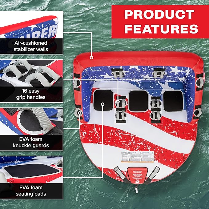 - The ultimate towable tubes for boating: The Super Mable delivers comfort, durability, versatility and non-stop thrills for up to 3 riders; our famed tube is now available in a patriotic design that makes every day on the water a celebration