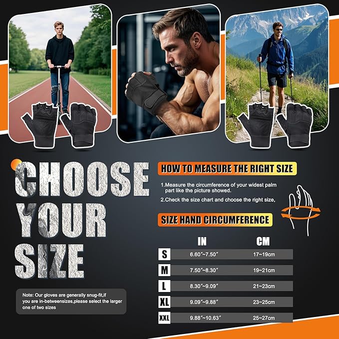 - 【Multiple Sizes】POONWEI Fitness Gloves are available in four sizes: M, L, XL, and XXL, meeting the needs of men and women and various palm sizes. It is more suitable for use in a variety of scenarios: fitness, weightlifting, climbing, cycling, shooting, or various outdoor sports