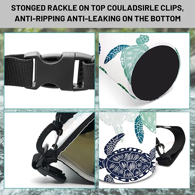 - Versatile Use for Every Adventure:Our sea turtle waterproof backpack perfect for kayaking, camping, rafting, and hiking, our multifunctional dry bag adapts to various outdoor activities.IPX8 CERTIFIED WATERPROOF PHONE CASE: Included with your dry bag is an IPX8 certified waterproof phone case, compatible with phones up to 6.5 inches. Its snap-and-lock access and dual-sided clear windows allow for photos while keeping your device safe and dry.