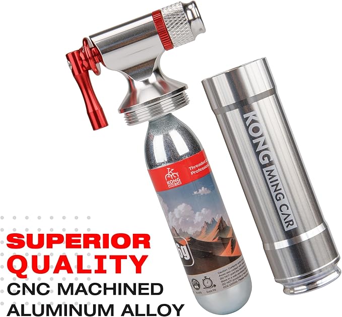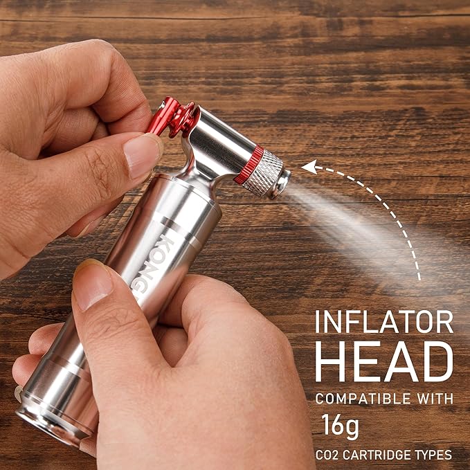 - Get Back Riding Quickly–Whether you're on the road or trail, repairing a flat, or preparing for your next ride - the Bike CO2 inflator kit offers the most reliable way to rapidly inflate your bike tires anywhere, anytime,Simply connect any threaded 16g / 25g CO2 cartridge to the inflator, cover CO2 cartridge with the included foam protective pad, & rapidly air up your tires by pressing the inflator nozzle directly onto the tire valve stem,Inflate your tires in seconds.