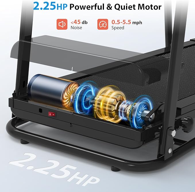 - 【Foldable & Move Wheels】The running board of this foldable treadmill can be lifted and its handrails removed, substantially cutting down on the space it occupies when idle. And the folding process is easy, not need to use many tools or other people to assist. In addition, the walking treadmill is equipped with front-end wheels so that even elderly people alone can move the treadmill to any desired position.
