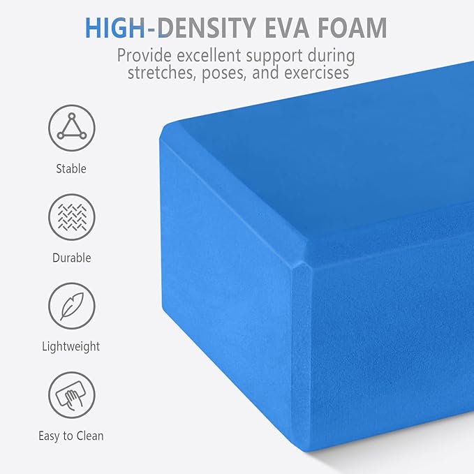 - Durable & Supportive Yoga Blocks: Crafted from high-density EVA foam, these large 9x6x4-inch yoga blocks provide excellent support during stretches, poses, and exercises. These yoga blocks help deepen your stretch While you're doing yoga, Pilates, or physical therapy.
