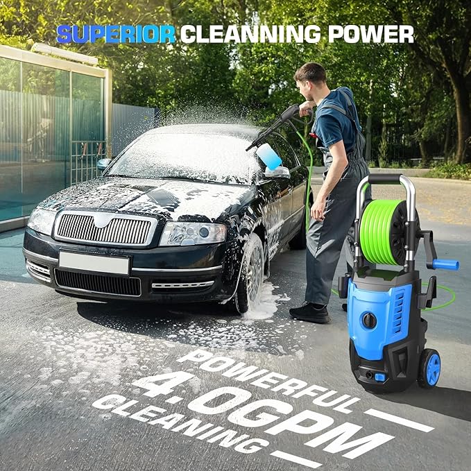 - EASY HOSE STORAGE &STRONG POWER: High pressure cleaner delivers max cleaning power of 4800 PSI and 4.0 GPM, providing you with impressive pressure washing capability. Rollable hose design for easy storage, preventing your hoses from getting messy. ps:The pressure data is obtained from testing conducted in a laboratory environment