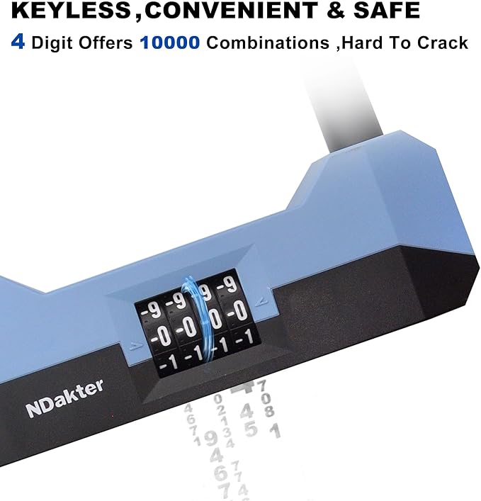NDakter Bike Locks Heavy Duty Anti Theft,18mm Bicycle Combo U Lock with 5FT Cable, 4-Digit Resettable Combination Electric Scooter Lock with 2Keys and Bracket for Tricycle, Moped, Motorcycle (Blue)