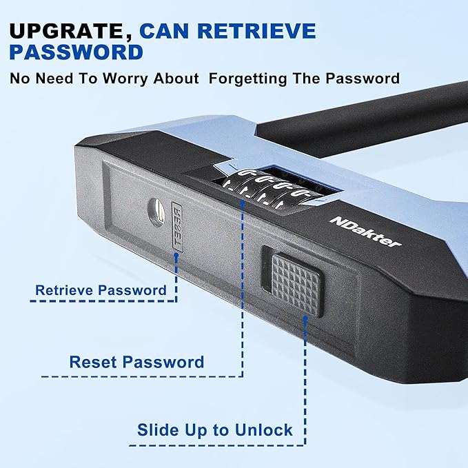 - 【Keyless Convenient】Say goodbye to the trouble of forgotten, lost or broken keys! This combination bike u-lock has a 4-digit code that can be reset and 10,000 combinations for added security! The precision cylinder allows the 4-digit code to be easily rotated without jamming! Don't worry if you forget your combination! 2 keys will help you retrieve the correct combination! Additionally, there is an adjustable bracket for 6.5in diameter or smaller tubes, making it easy to carry while riding and secure anywhere you go!