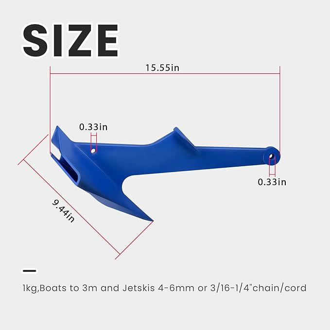 - COMPATIBLE MODELS:Nylon Boat Anchor Compatible with Jetskis,Kayaks,PWC.(1kg,Boats to 3m and Jetskis 4-6mm or 3/16-1/4"chain/cord)