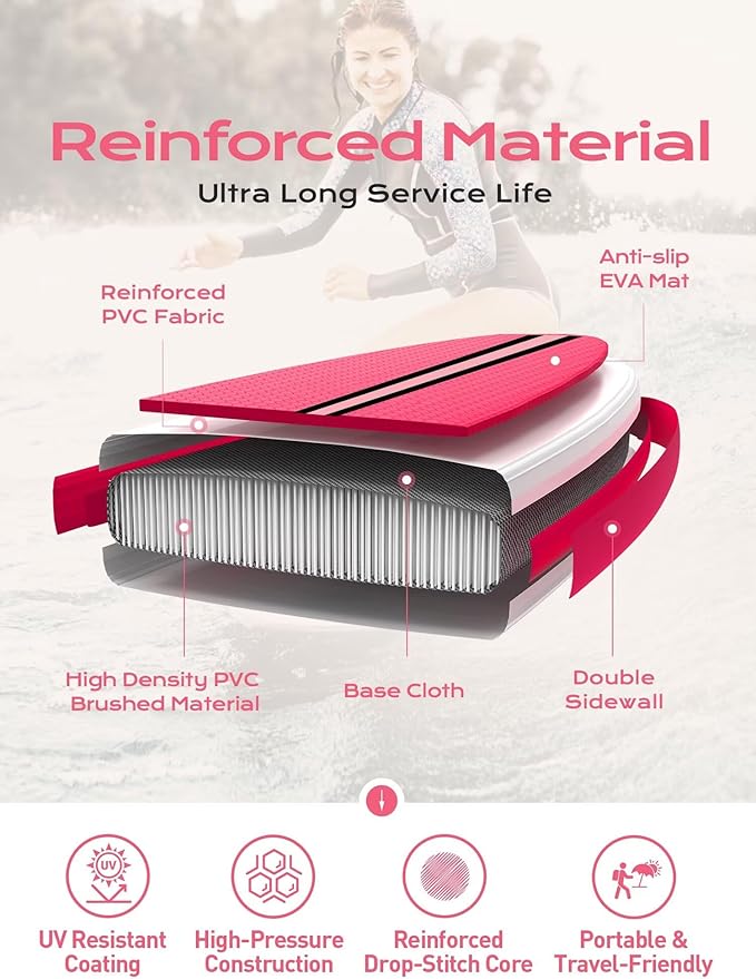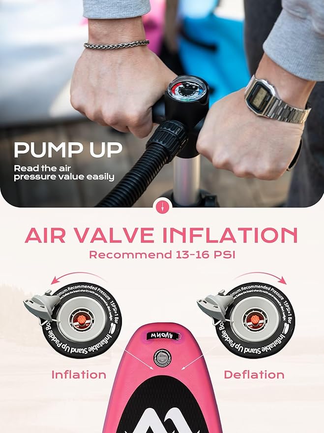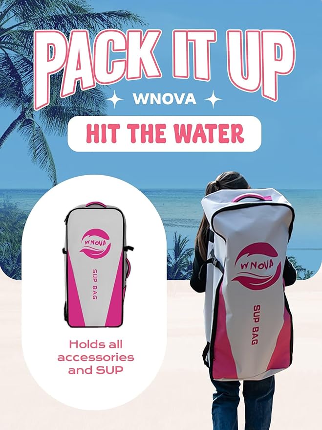 - 【Full SUP Kit】: Includes high-pressure hand pump; 3-piece adjustable paddle; 3 removable fins for speed control; 1 shoulder strap; 1 ankle leash; waterproof phone bag; repair kit; travel backpack—ready to use out of the box