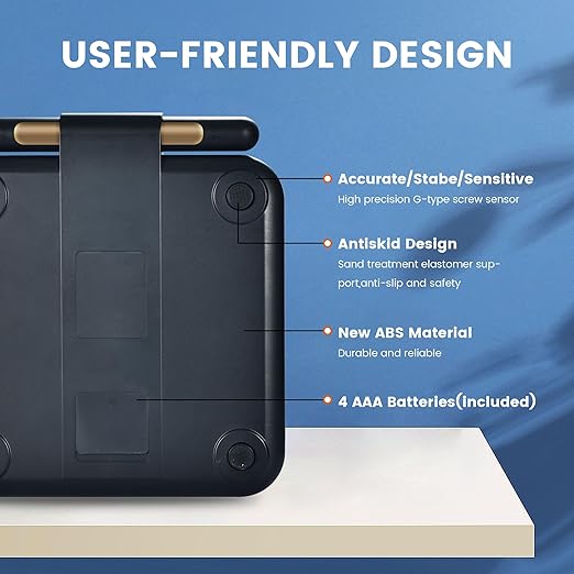 - DURABLE & SAFE DESIGN FOR HOME USE: Built with tempered glass and reinforced ABS materials, supporting weights up to 396LBS (180kg). Anti-slip rubber pads ensure stability, while the sleek, compact design fits seamlessly into bathrooms or gyms